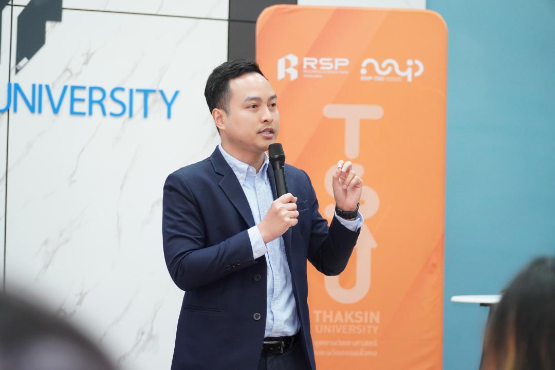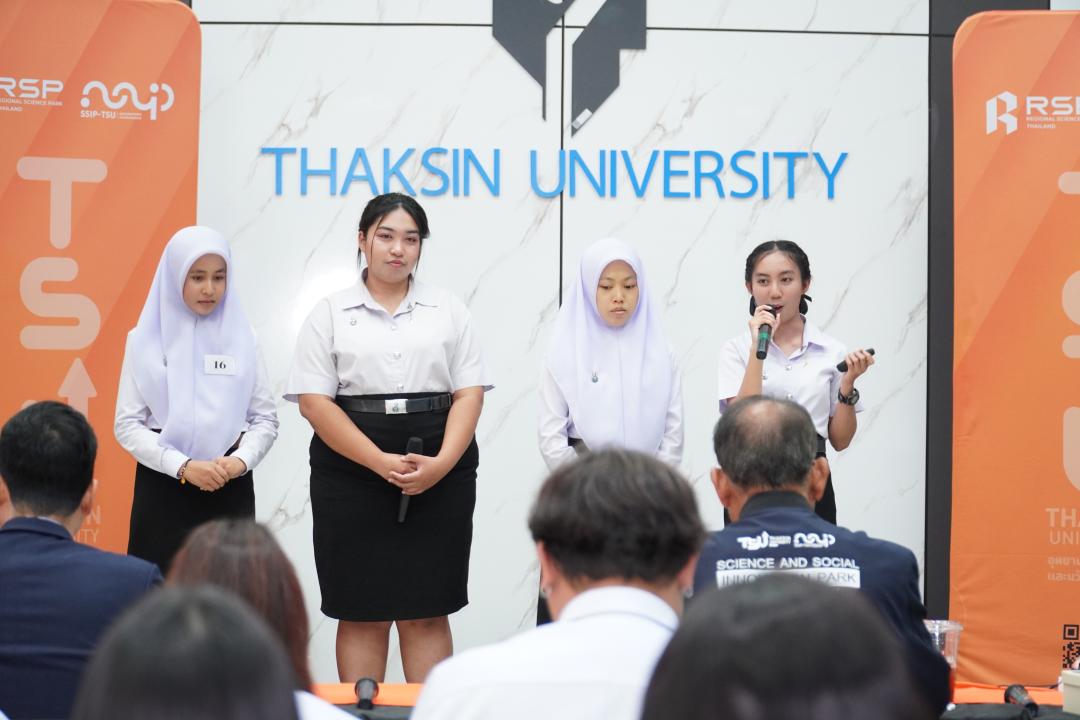 เปิดเวทีอย่างเป็นทางการ โดย อาจารย์ ดร.พลากร บุญใส ผู้อำนวยการอุทยานวิทยาศาสตร์และนวัตกรรมสังคม ที่เน้นย้ำบทบาทของ SSIP TSU ในการเป็นกลไกสนับสนุนให้นิสิตพัฒนาไอเดียสู่ต้นแบบธุรกิจนวัตกรรมที่สร้างผลกระทบเชิงสังคม