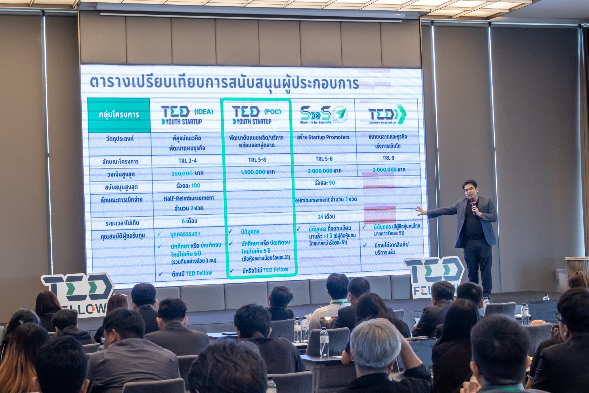ภายใต้กิจกรรมการสรรหา คัดกรอง และบ่มเพาะผู้ประกอบการ โดยเครือข่ายร่วมพัฒนาผู้ประกอบการ (TED Fellow) ปี 2569 ที่จัดขึ้นระหว่างวันที่ 30 – 31 ต.ค. 2568 ณ โรงแรมเดอะ ควอเตอร์ รัชโยธิน บาย ยูเอชจี