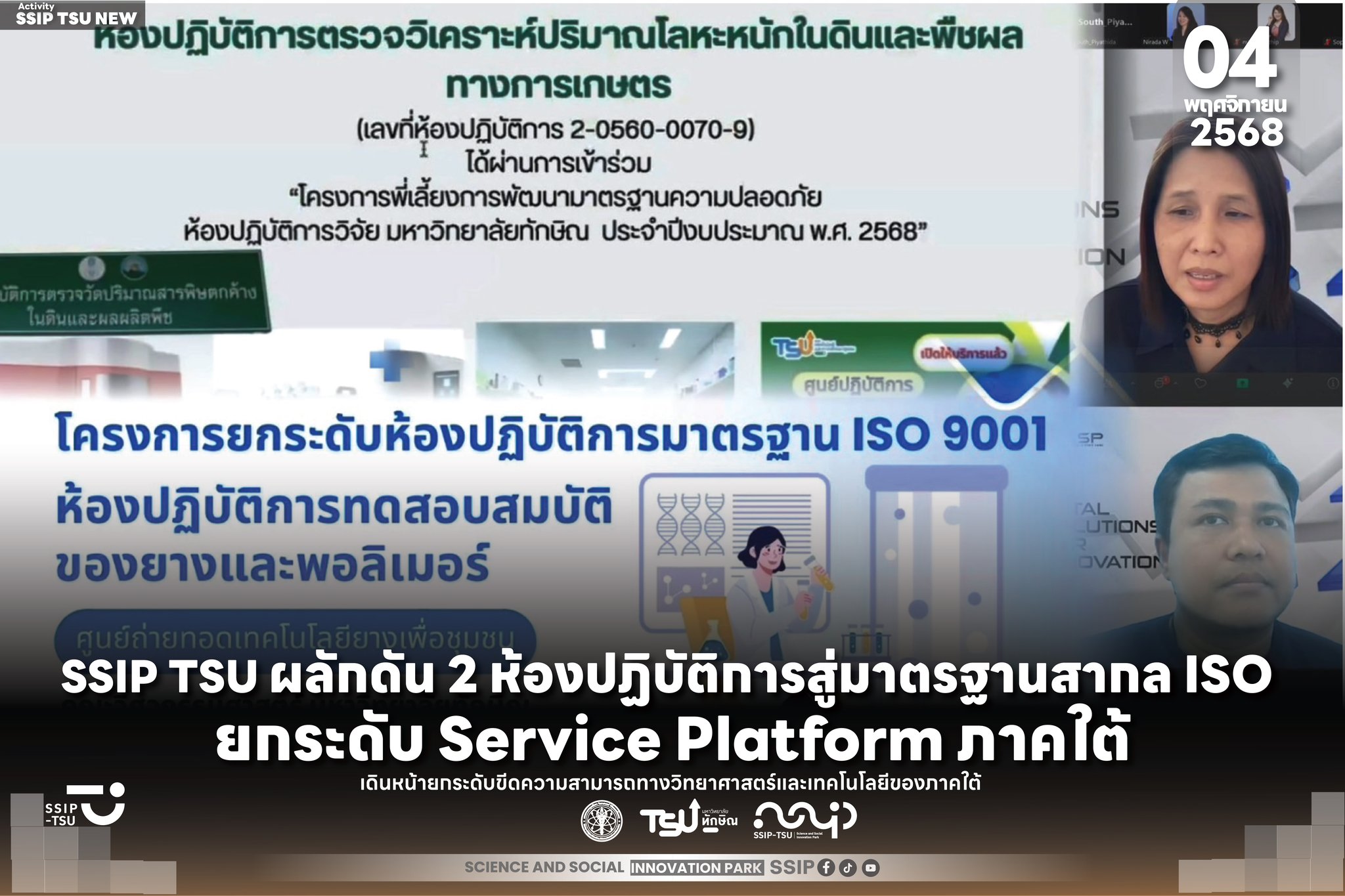 มหาวิทยาลัยทักษิณ โดยอุทยานวิทยาศาสตร์และนวัตกรรมสังคม ผลักดัน 2 ห้องปฏิบัติการ สู่มาตรฐานสากล ISO ยกระดับ Service Platform ภาคใต้ อุทยานวิทยาศาสตร์และนวัตกรรมสังคม มหาวิทยาลัยทักษิณ